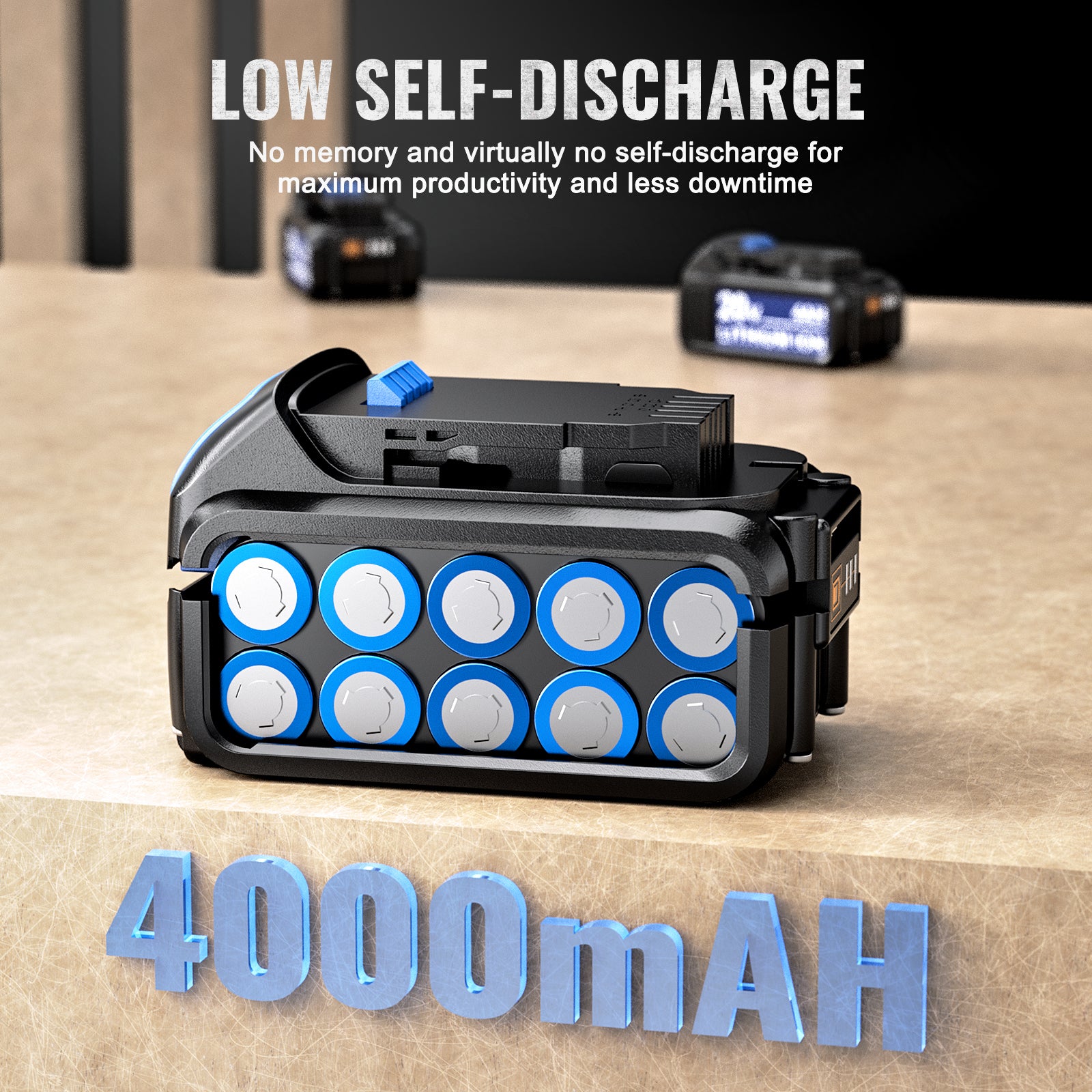 Extended Capacity: 4Ah Lithium-Ion battery offers 60% more run time compared to 2Ah models.