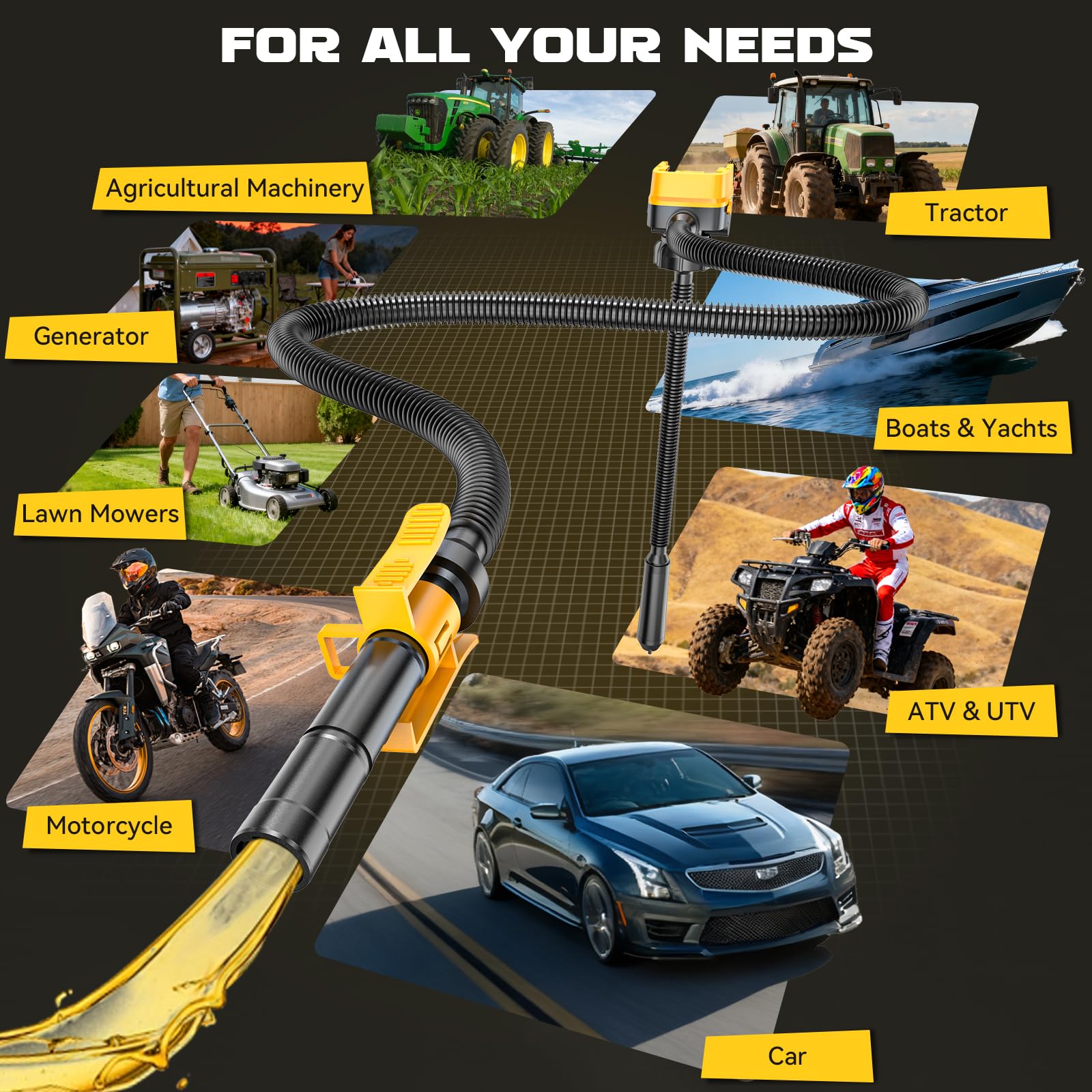 SMART AUTO SHUT-OFF, TRUE ONE-HANDED OPERATION: With an intelligent auto shut-off sensor, the pump starts and stops automatically—no manual switch required—for smooth, one-handed fuel transfer. The slim 33 mm (1.3 inch) nozzle fits tanks on cars, motorcycles, tractors, mowers, and generators, making it a practical tool for car enthusiasts, farmers, and gardeners