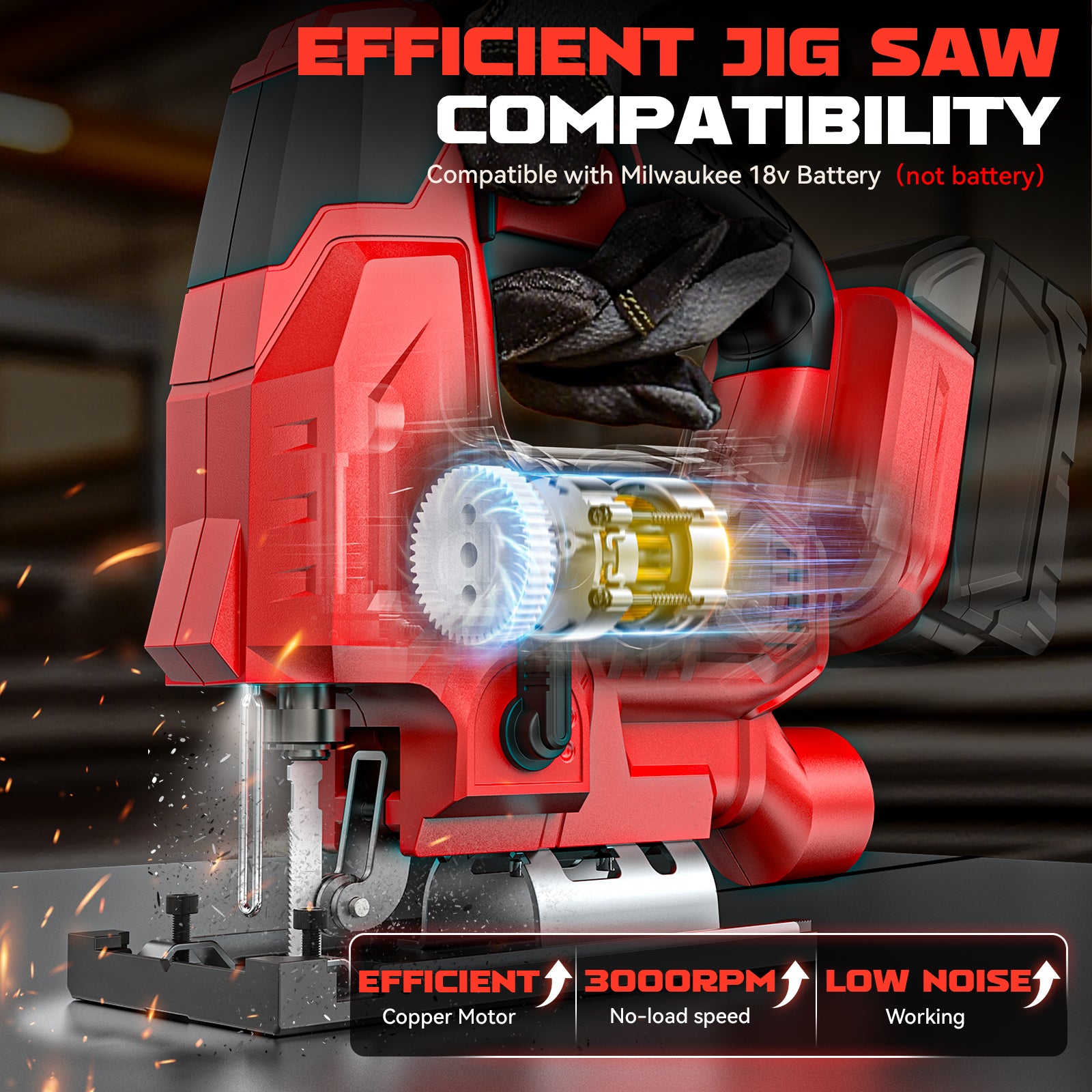 【Two-Year Warranty】Ecarke cordless jig saw are built for reliability and backed by a two-year warranty for your peace of mind. Our customer support team is available 24/7 to assist with any inquiries. NOTE:This cordless jig saw is compatible with Milwaukee 18V Battery(48-11-1811, 48-11-1815, 48-11-1820, 48-11-1822, 48-11-1828, 48-11-1840 , 48-11-1841, 48-11-1850 and more). The battery is not included